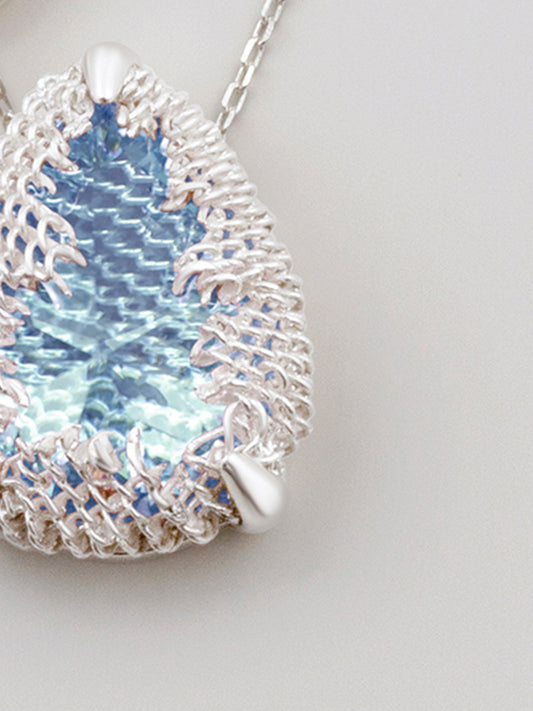 Pear Filigree Gemstone Pendant Necklace - SKY BLUE